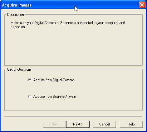 Select the scanner or Digital Camera(If your camera came with a TWAIN driver) connected to your computer and select next button.